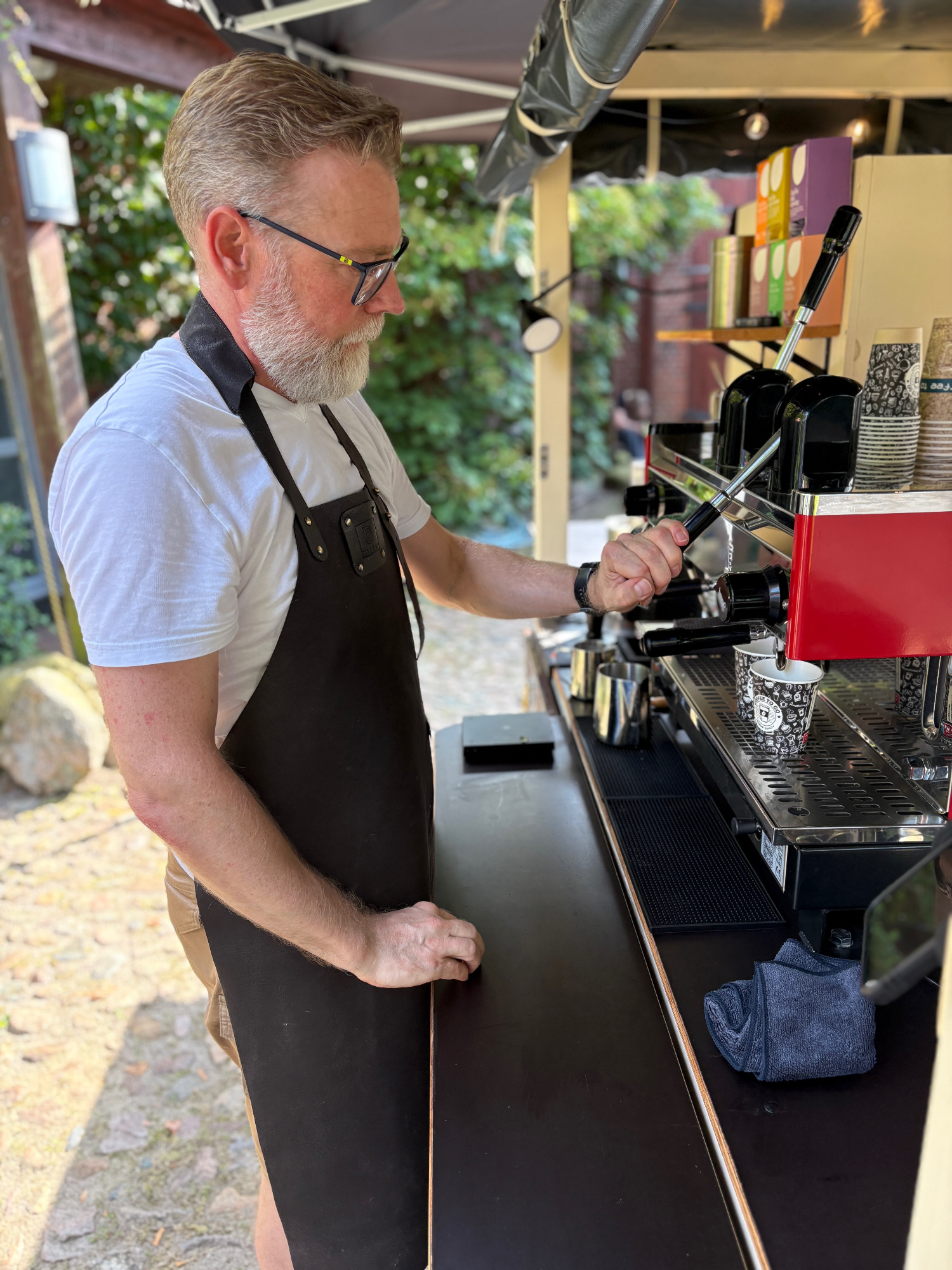 Ob auf dem Markt, bei deiner Hochzeit oder dem nächsten Firmenevent: Ich bringe nicht nur exzellenten Kaffee mit, sondern auch die Leidenschaft, Menschen zusammenzubringen. Lass uns gemeinsam genießen!