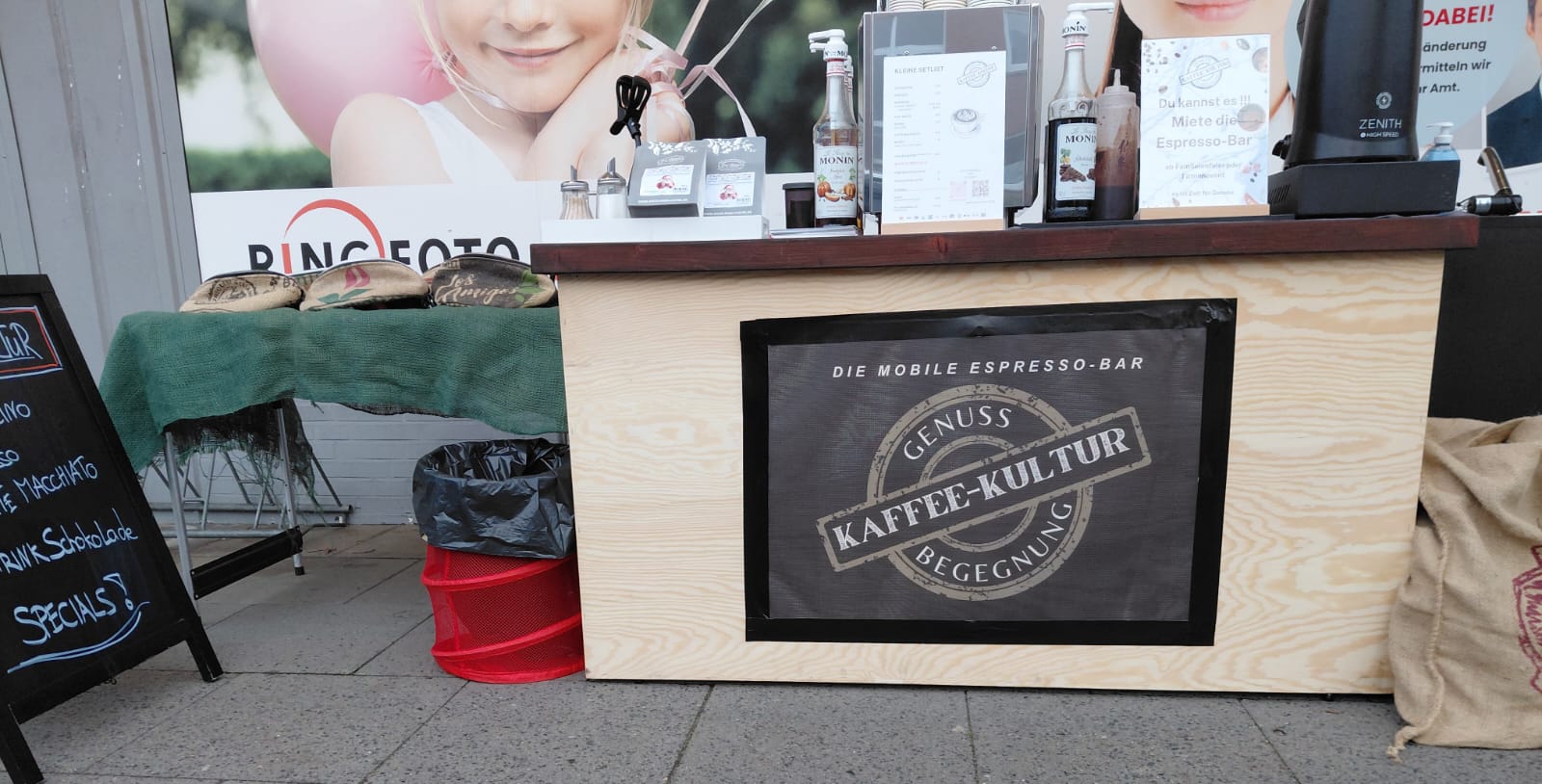 Ob Outdoor mit dem mobilen Anhänger oder Indoor mit dem kompakten Tresen – JB Kaffee-Kultur passt in fast jede Location.